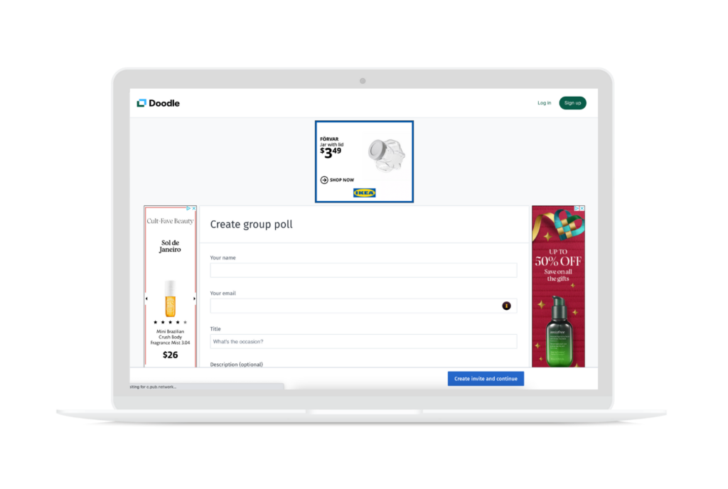 - Increased Ad Revenue – Doodle underwent a rebrand that focused on user experience which reduced the number of ad slots on their website. They were looking for a solution that maximized ad revenue with reduced ad space.
